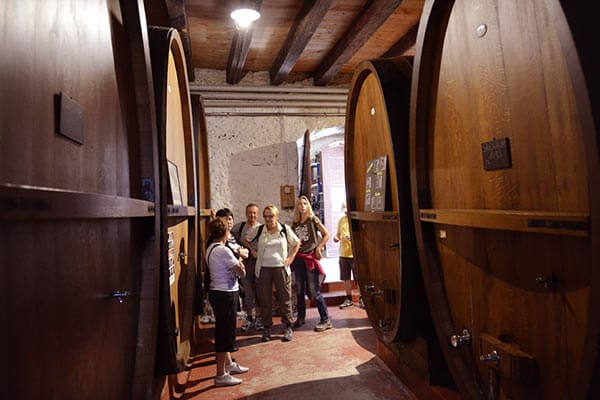 Les vins du Domaine sont élevés en foudre de chêne, dans les magnifiques caves du Domaine, d’une capacité totale de 300’000 litres.
